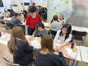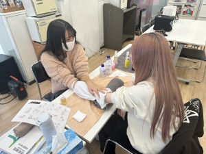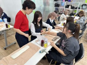 初めてのハンドマッサージの授業で生徒たちもとっても楽しそうな様子でした!