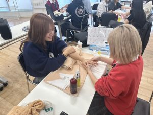 今回施術を行ったハンドマッサージは保護者の皆さんをお迎えする為に授業にて何度も何度も繰り返し練習を行い、技術を磨いてきたものです!